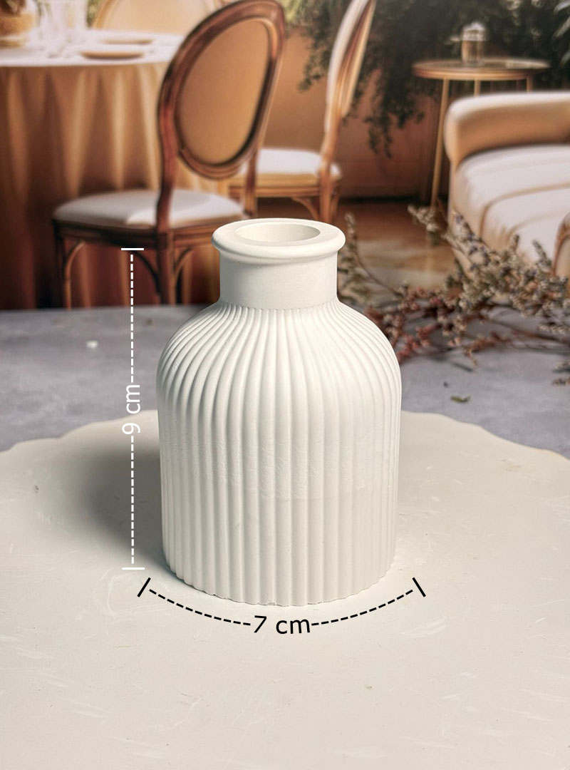 Textura de Líneas Definidas: El grabado vertical en el yeso crea un juego de sombras que acentúa su forma circular, ofreciendo un aspecto moderno y arquitectónico.