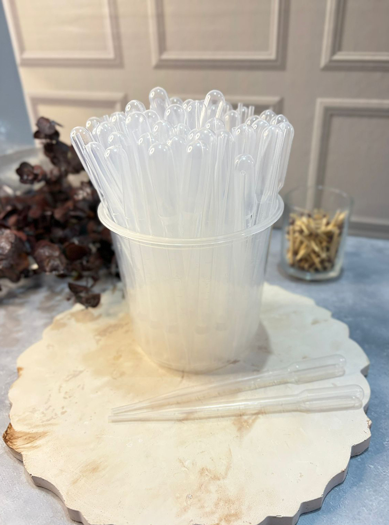 Gotero plástico desechable con capacidad de 5 ml, ideal para trabajar con aromas, esencias y mezclas líquidas que requieren precisión en cada aplicación.