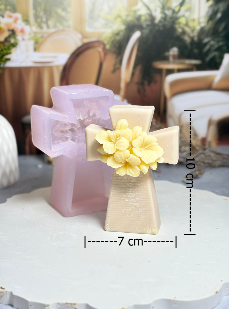 Altar de Bienestar: Coloca la cruz junto a una vela de Cera de Soja blanca; la luz de la llama resaltará el relieve de las hortensias, creando una atmósfera de introspección y calma.